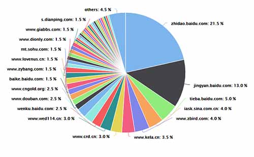 以下為搜索一類關(guān)鍵詞,各網(wǎng)站的整體排名情況,比例越大說明排名能力越好。